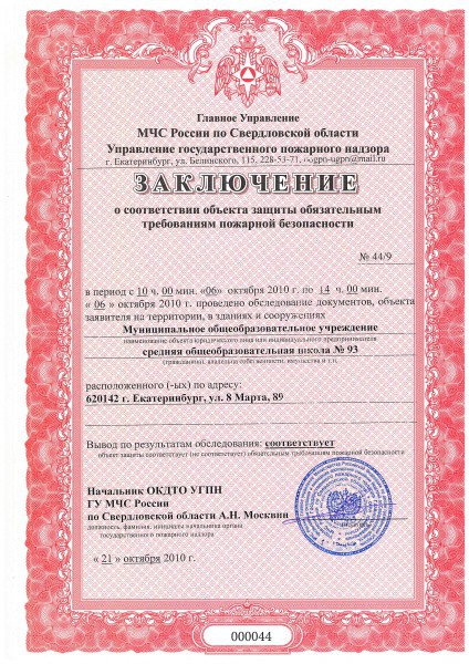 Заключение о соответствии объекта защиты обязательным требованиям пожарной безопасности (скачать) (посмотреть)